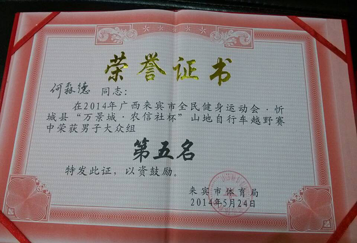 2014年5月24日“萬景城 農(nóng)信社杯”山地自行車越野賽,LAPLACE車隊的何森德和潘美石分獲5、6名。