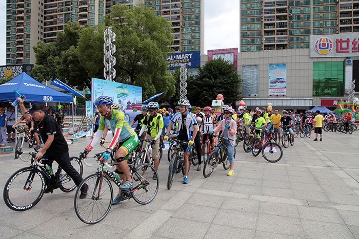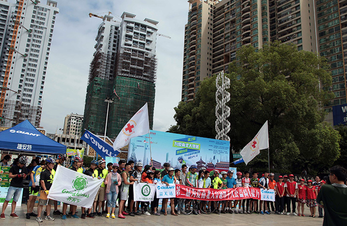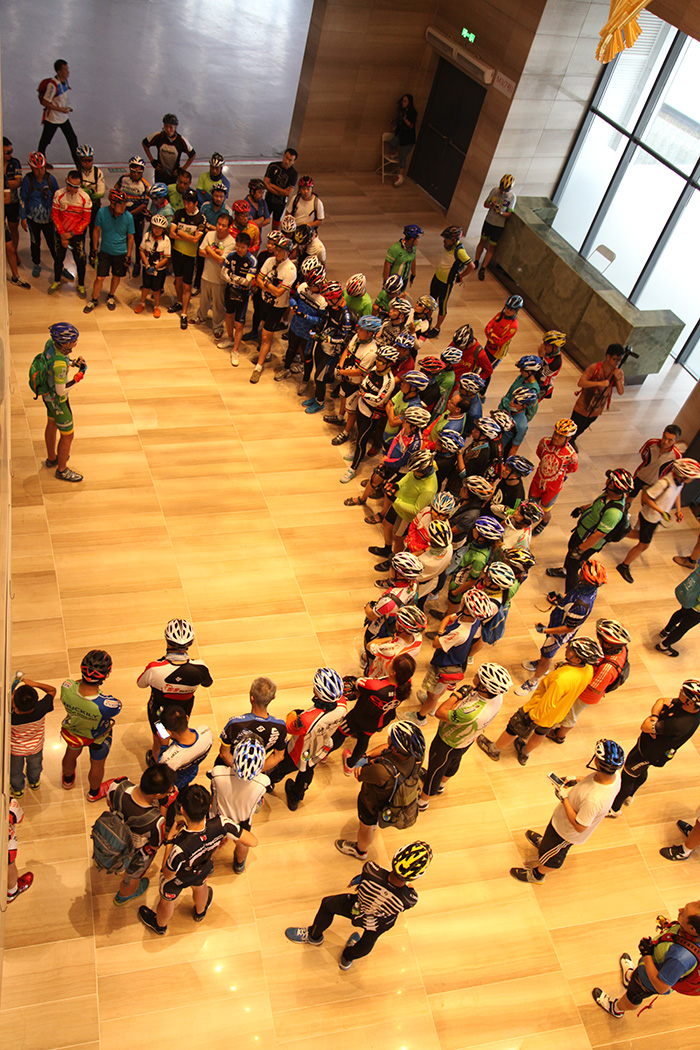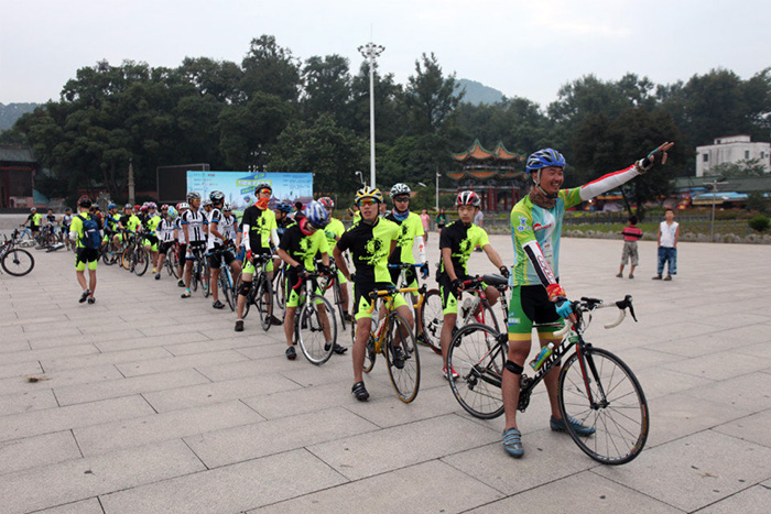 韶關(guān)南華寺門口,早上六點,王衛(wèi)領(lǐng)隊準(zhǔn)備大穿越最后一天的騎行沖刺
