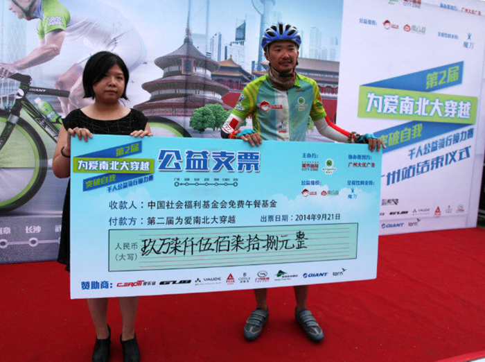 0921截止至韶關(guān)騎回廣州當(dāng)天,活動共為免費午餐籌得善款九萬七千多元,相當(dāng)于為山區(qū)孩子送去三萬多頓免費午餐。相當(dāng)于這一路上每騎行76米就有善心人士捐出一頓午飯。
