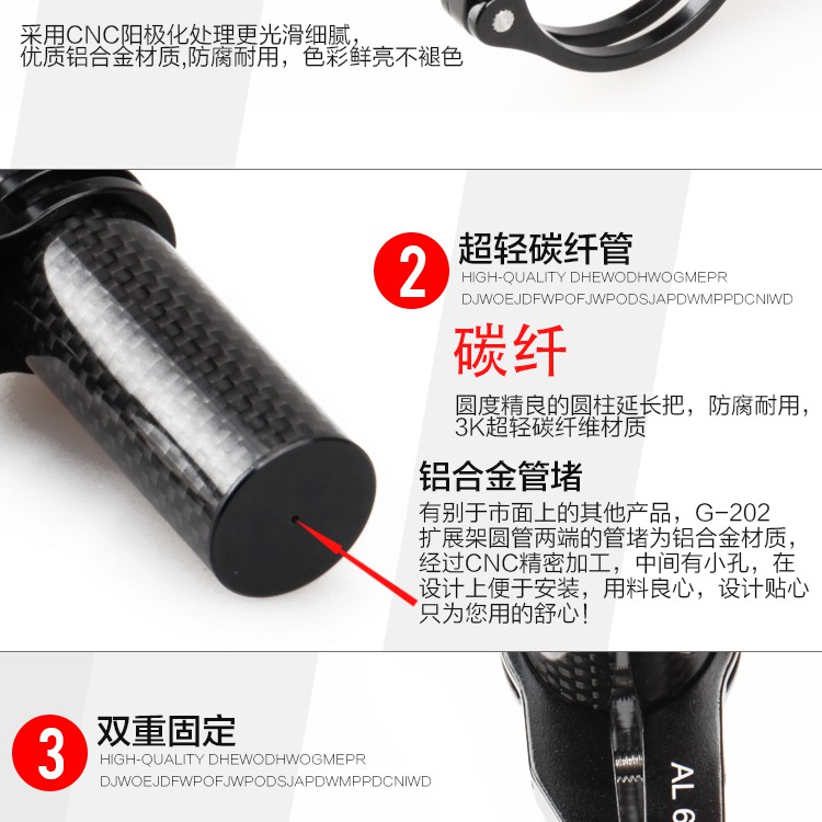 說(shuō)明:本品拆卸只需拆掉延伸架,方便快捷,加長(zhǎng)圓管(長(zhǎng)度達(dá)202mm),突破空間限制,讓您的車頭逼格更高!