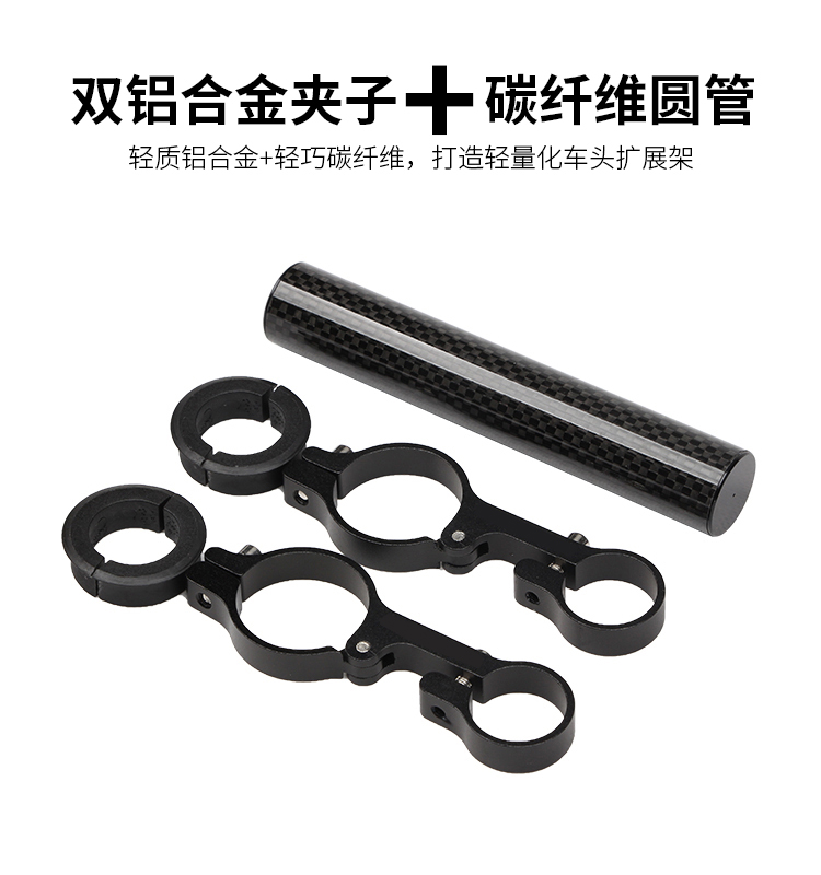 說明:本品拆卸只需拆掉延伸架,方便快捷,碳纖維圓管(長度達130mm),突破空間限制,讓您的車頭逼格更高!