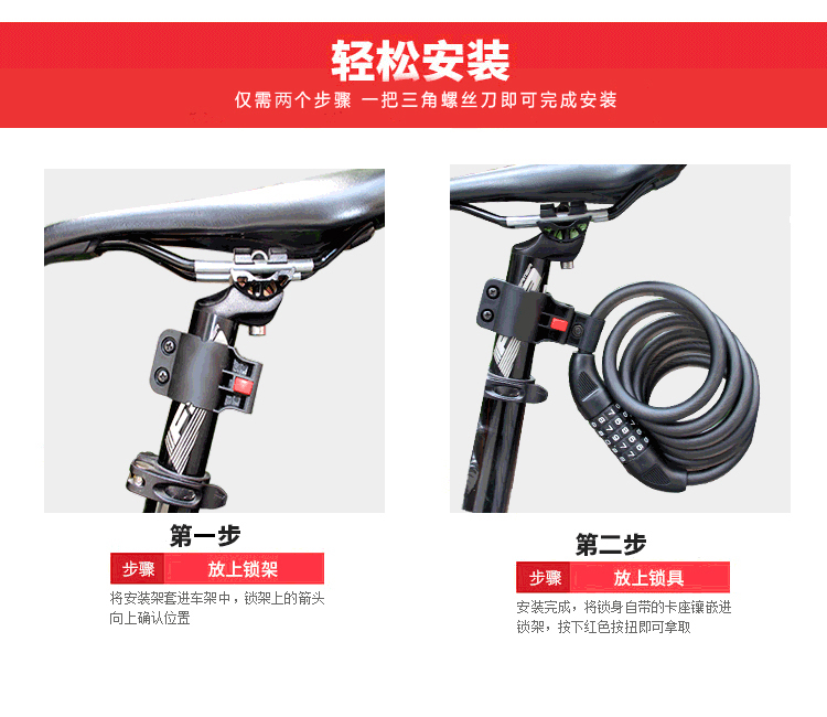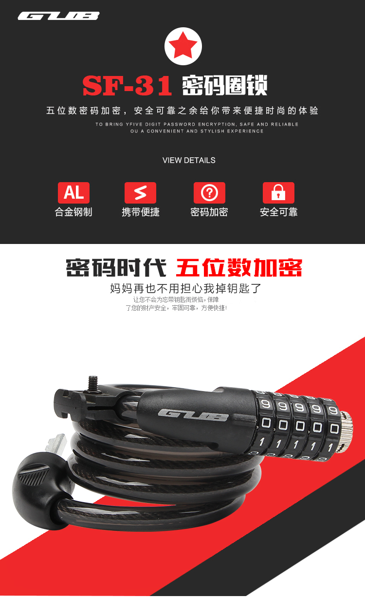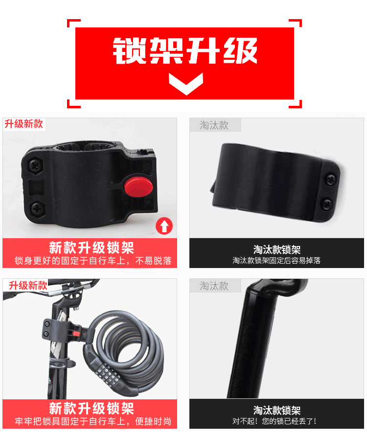 特色:五位數(shù)密碼鎖,時尚便捷免鑰匙,1.2米合金鋼纜想怎么鎖就怎么鎖,鋁合金鎖芯更牢固,帶鎖架方便使用