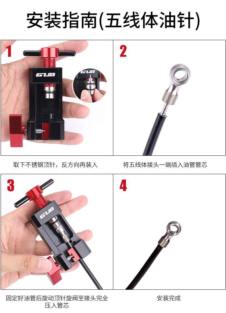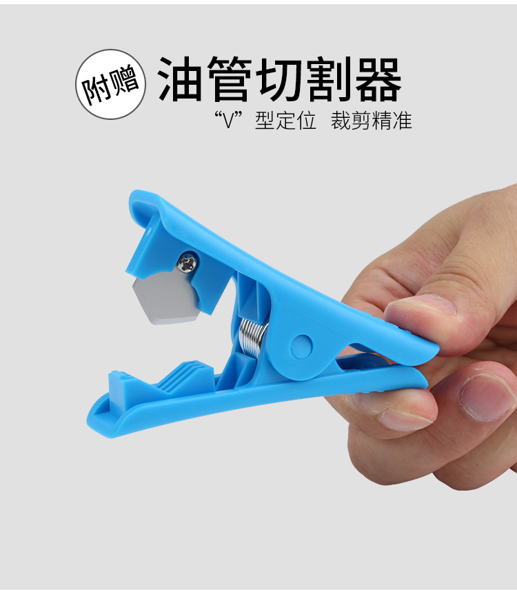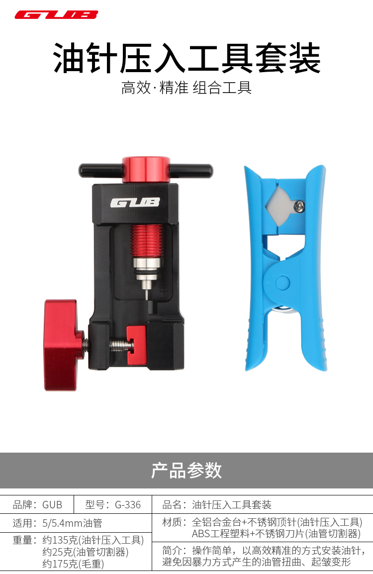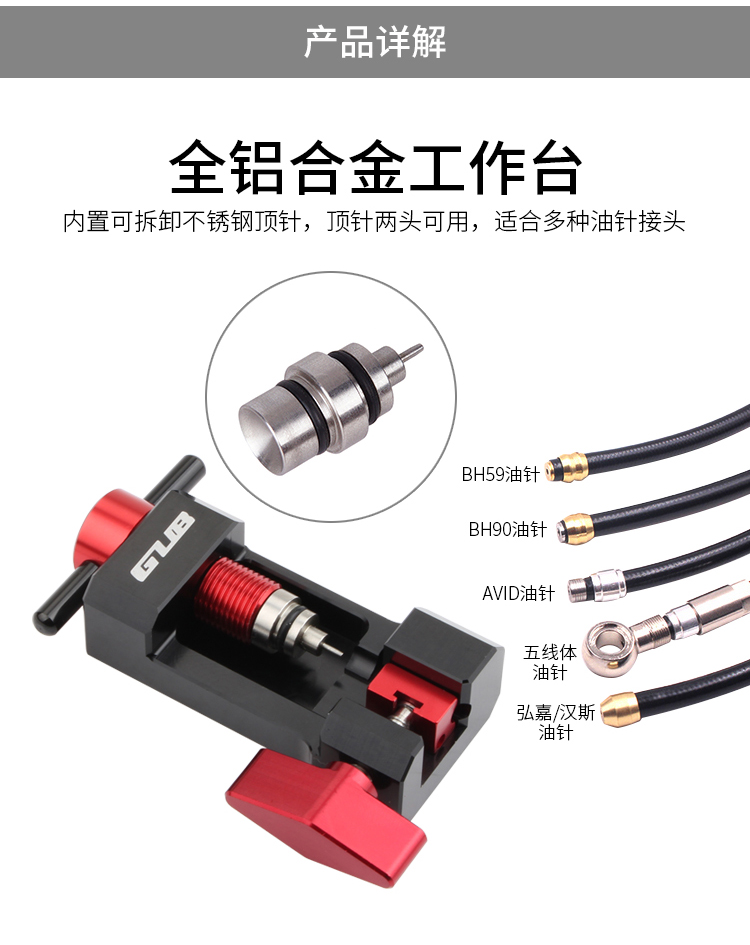 材質(zhì):全鋁合金臺(tái)+不銹鋼頂針(油針壓入工具),ABS工程塑料+不銹鋼刀片(油管切割器)