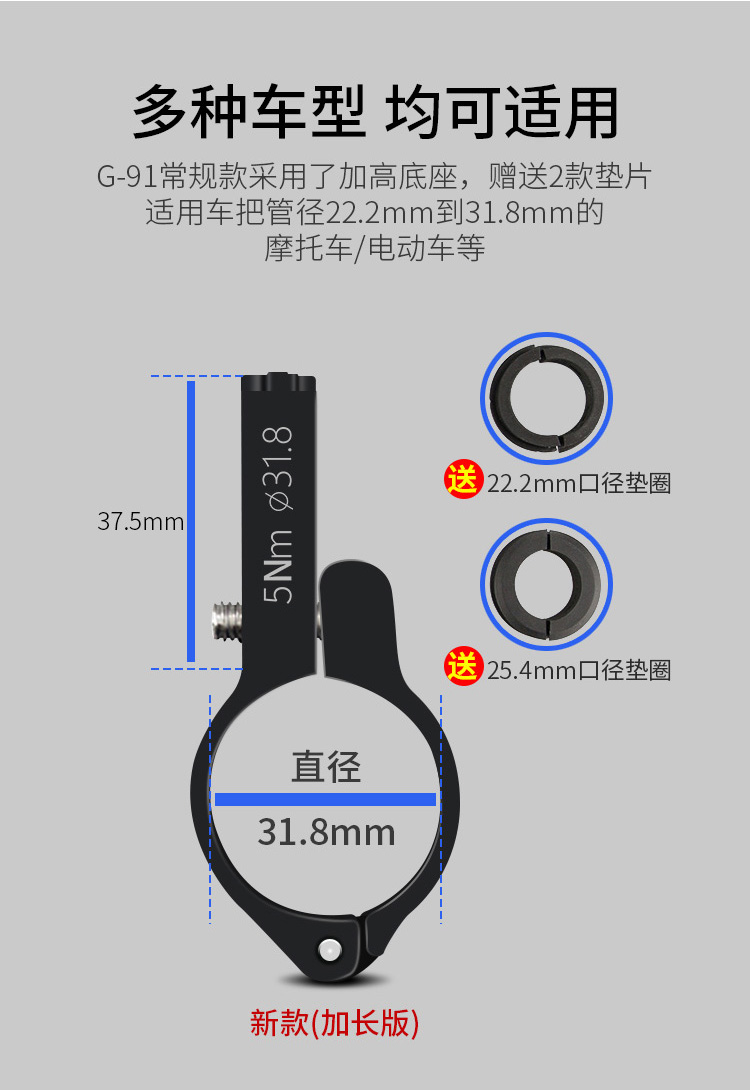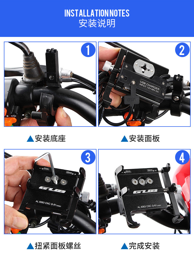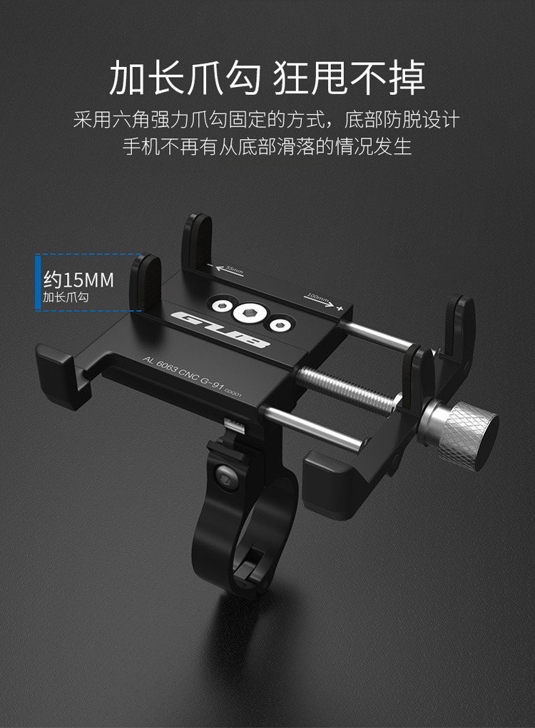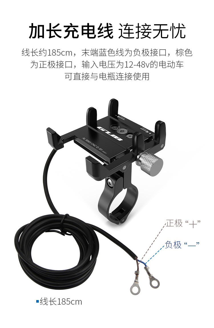 特點:全鋁合金架體,四對位加長固定部+強化底托,更標(biāo)配穩(wěn)固綁帶,高兼容性不挑手機型號,連接電瓶后可為手機充電,摩托車/電動車等都可使用!