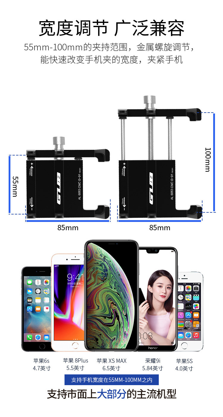 規(guī)格:支持55-100mm寬的手機