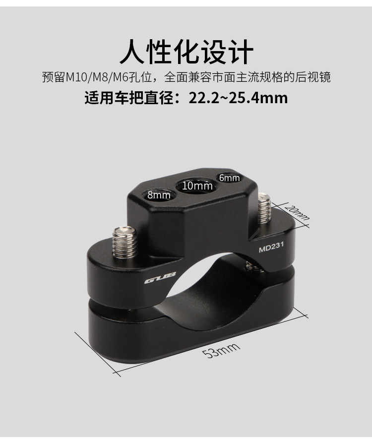 簡介:針對沒有后視鏡安裝孔位的電動車或自行車而設(shè)計的實(shí)用小配件,鋁合金材質(zhì)滿足高強(qiáng)度使用需求,有了它就可以安裝后視鏡及手機(jī)架等配件。
