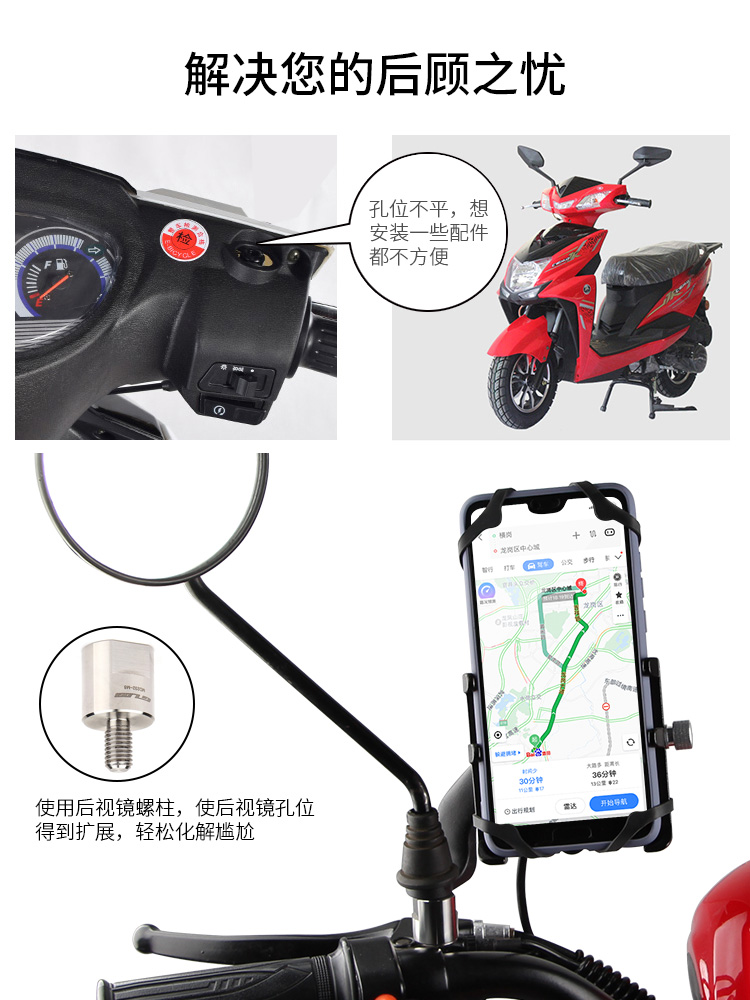 簡(jiǎn)介:此配件為后視鏡輔助配件,采用不銹鋼材質(zhì),耐用不生銹,用于摩托車/電動(dòng)車后視鏡孔位的擴(kuò)展,起到墊高或更好適配的作用。