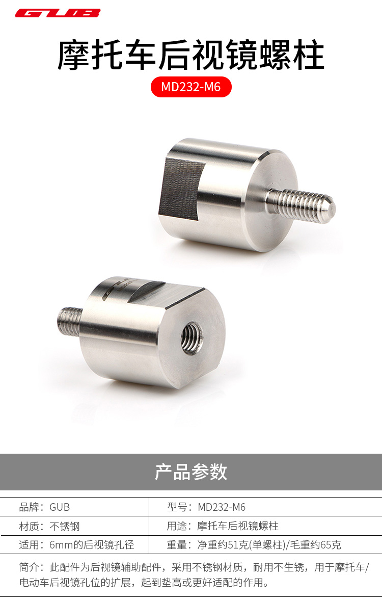 產(chǎn)品:GUB MD232-M6 摩托車后視鏡螺柱