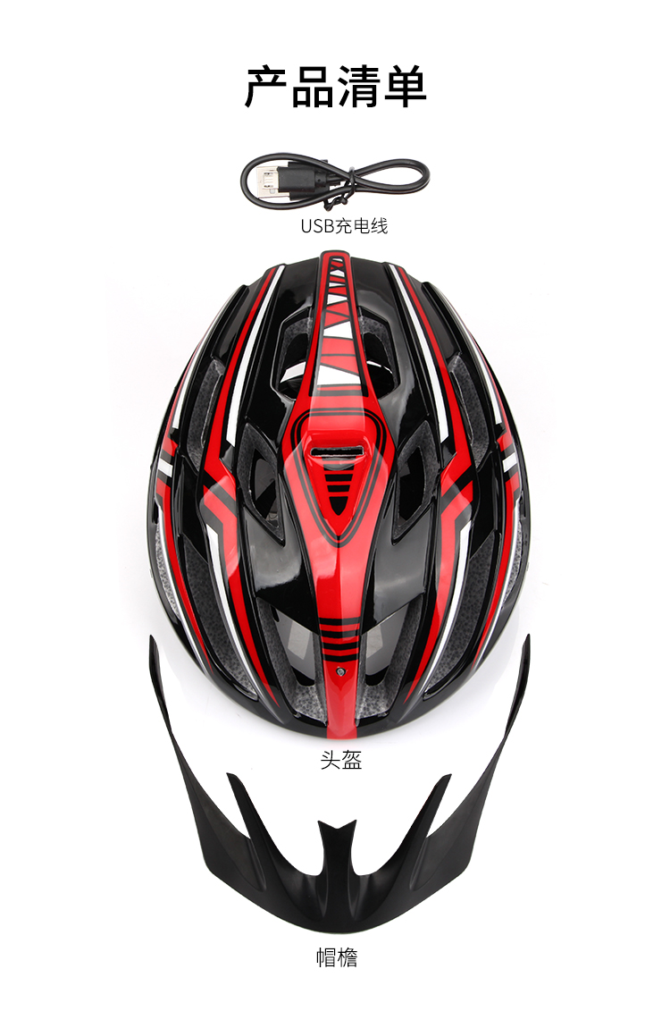 特色:帶USB充電尾燈(九種模式),一體成型,造型時(shí)尚,多通風(fēng)孔設(shè)計(jì),四色可選,性?xún)r(jià)比高。