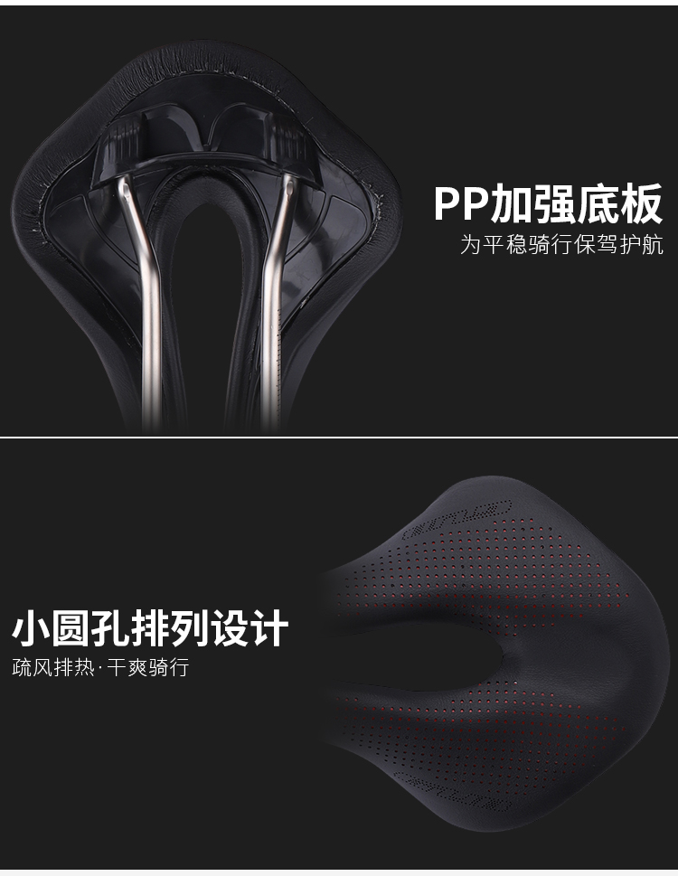 特色:超纖皮表面耐磨有質(zhì)感,鉻鉬鋼中空軌道強(qiáng)度高,小圓點排列設(shè)計,疏風(fēng)排熱,加強(qiáng)PP底板,平穩(wěn)輸出,安心騎行!