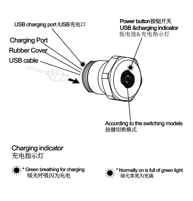 燈光模式:常亮、閃亮、爆閃、呼吸