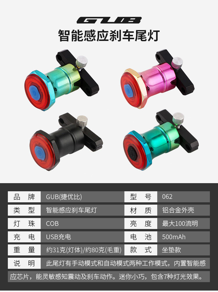 名稱:GUB 062 智能感應剎車尾燈(座墊款)