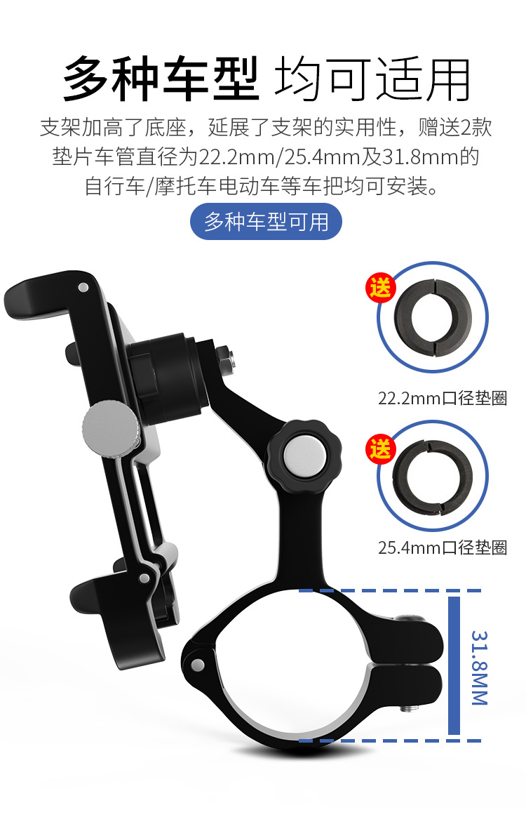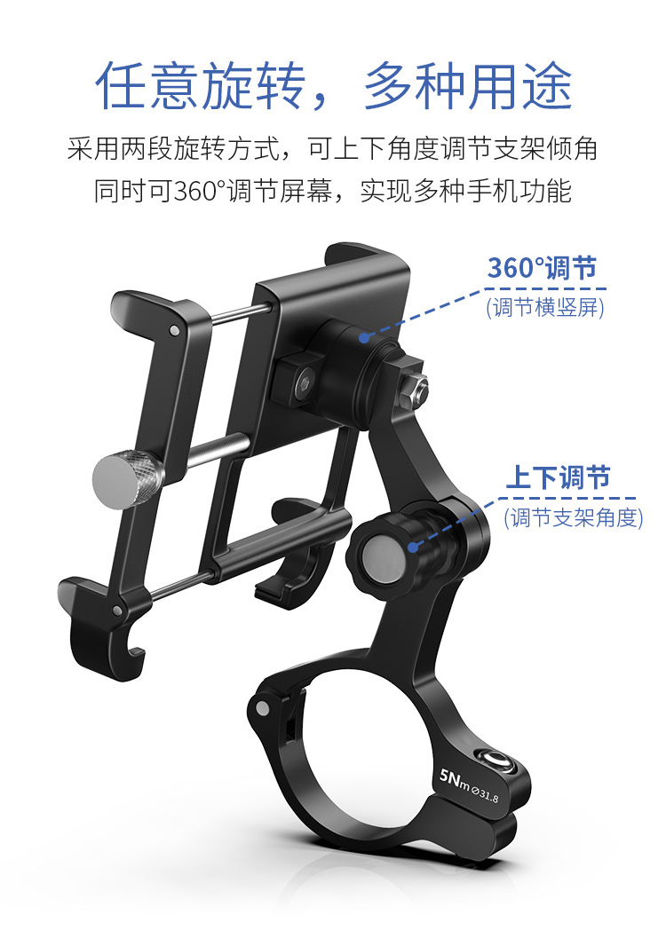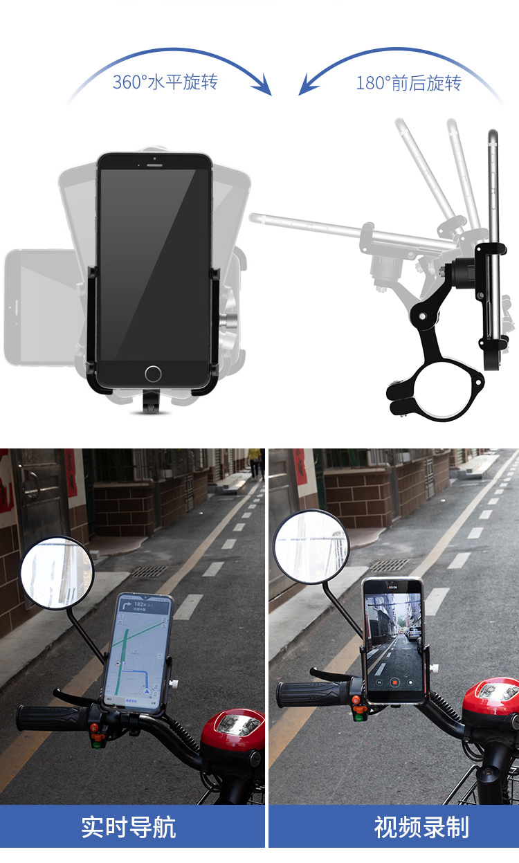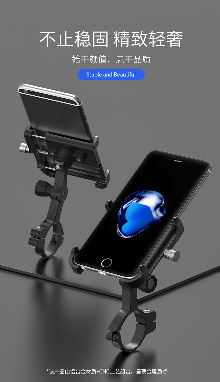 特點(diǎn):全鋁合金架體,雙重調(diào)節(jié),支持前后角度及平面360度調(diào)節(jié),支持手機(jī)架垂直固定,讓手機(jī)秒變運(yùn)動(dòng)相機(jī),記錄一路精彩!高兼容性不挑手機(jī)型號(hào),自行車、電動(dòng)車等都可使用!