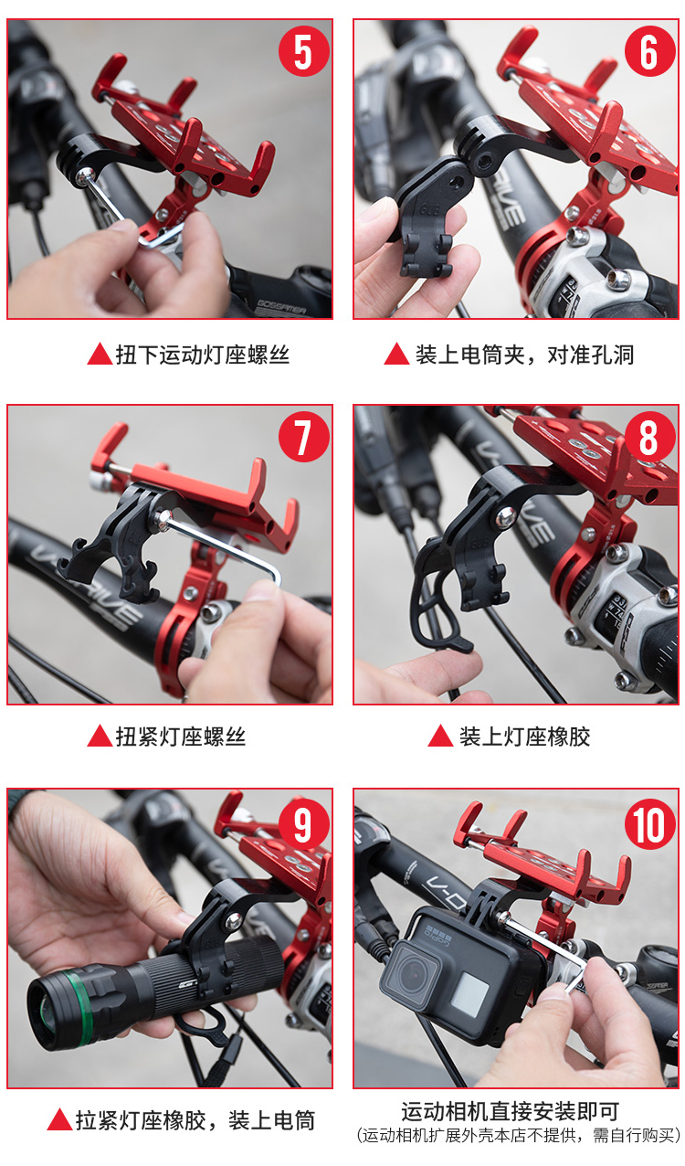 特點(diǎn):鋁合金架體,高兼容性不挑手機(jī)型號(hào),自行車(chē)、電動(dòng)車(chē)等都可使用。標(biāo)配電筒支架配件,豐富擴(kuò)展性能,讓你騎行無(wú)憂(yōu)!