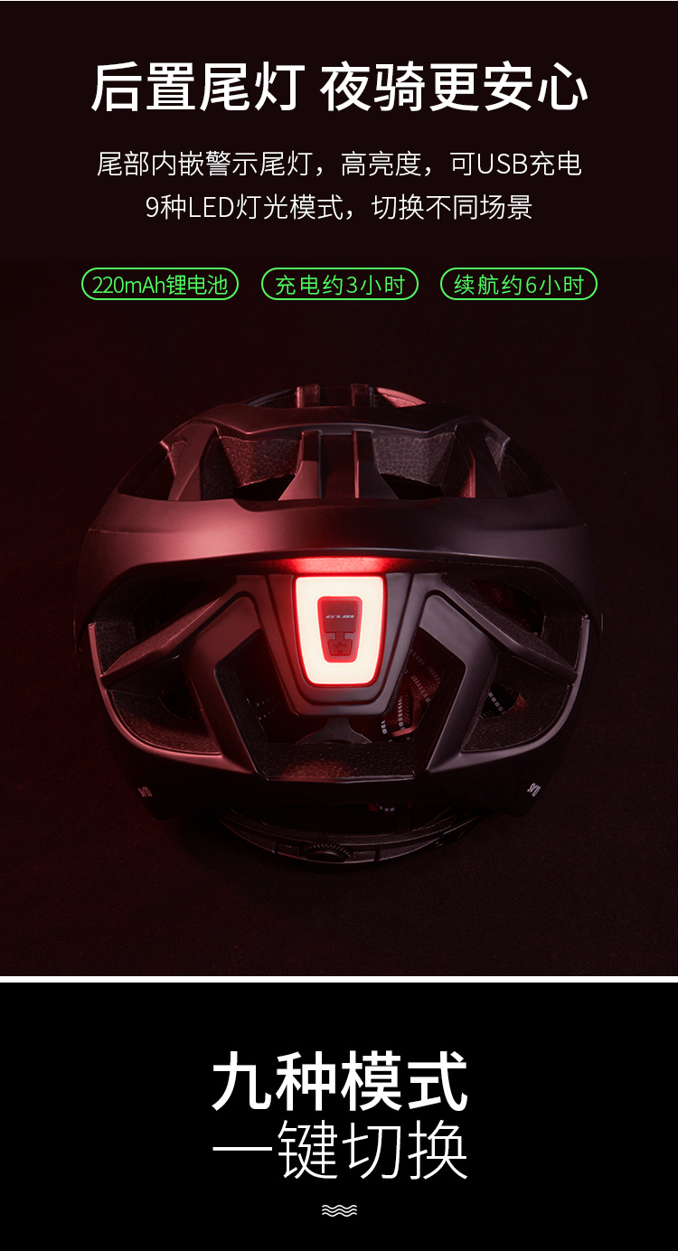 特色:帶USB充電尾燈(九種模式),一體成型,造型時(shí)尚,多通風(fēng)孔設(shè)計(jì),多色可選。