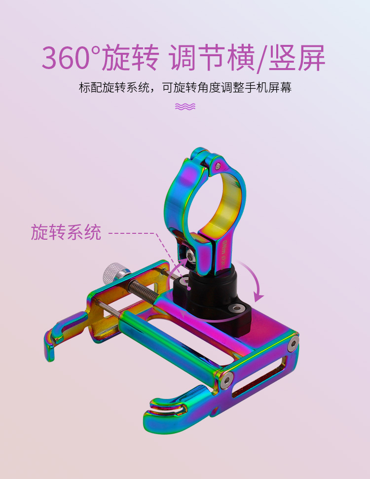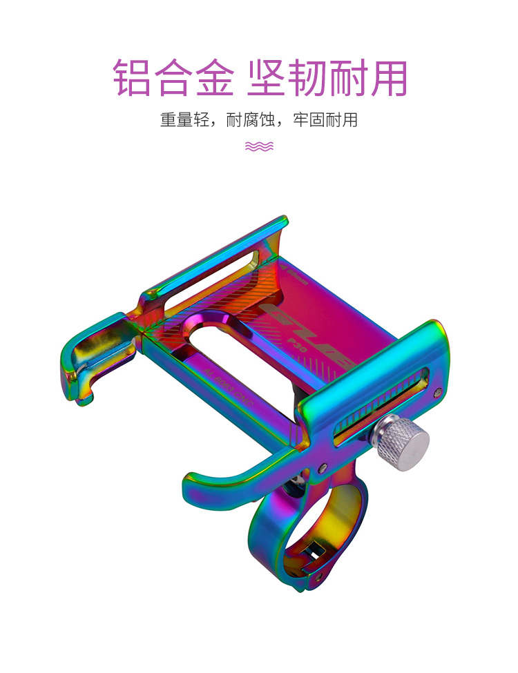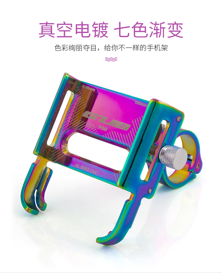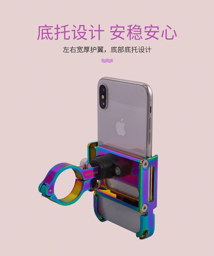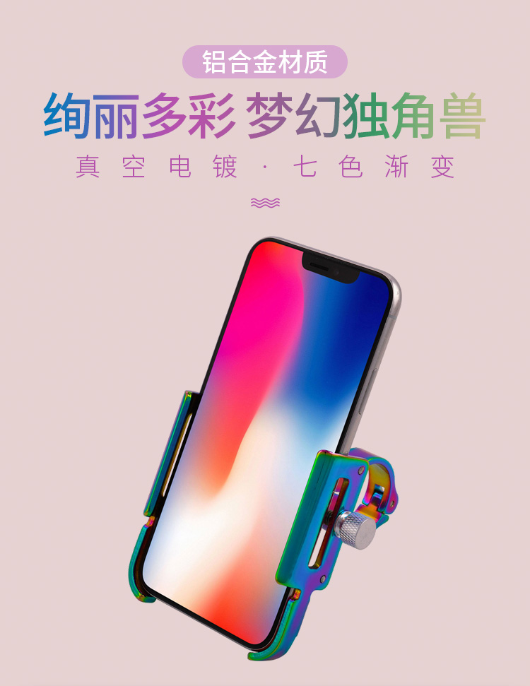 特點:鋁合金架體,七彩電鍍彰顯個性,高兼容性不挑手機型號,自行車、電動車等都可使用!