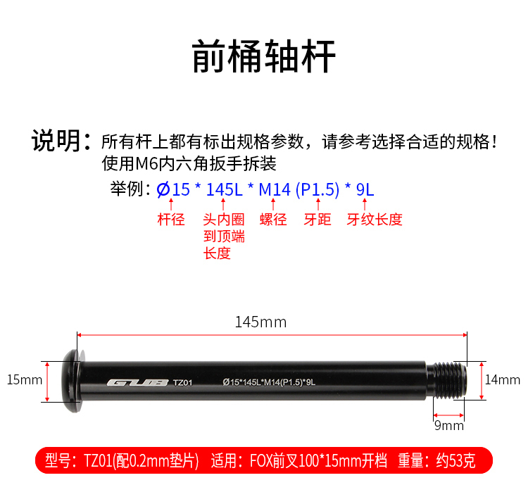 說(shuō)明:請(qǐng)根據(jù)前叉和車(chē)架尺寸選擇合適的桶軸桿!