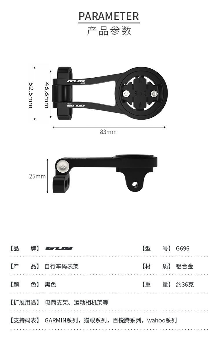 配置:配運(yùn)動(dòng)相機(jī)轉(zhuǎn)接座,wahoo、佳明、百銳騰和貓眼碼表接座