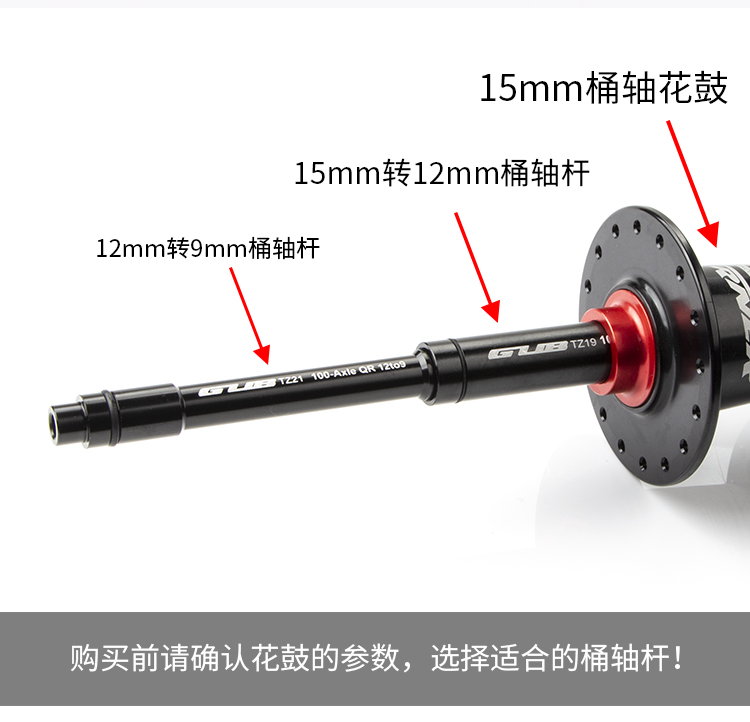 說明:請根據(jù)前叉和車架尺寸選擇合適的筒軸桿!