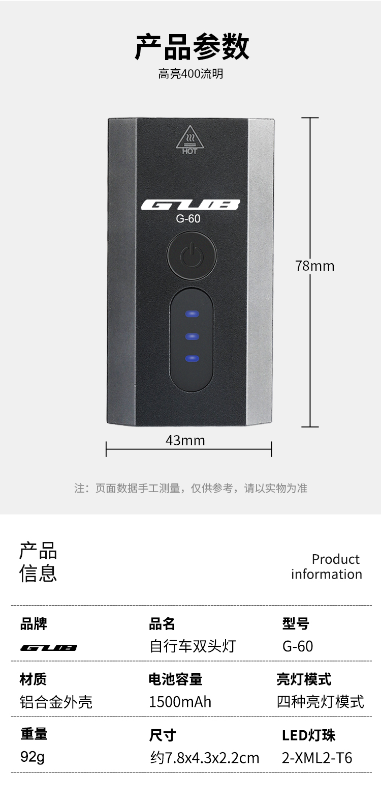 名稱:GUB G-60 雙頭自行車前燈