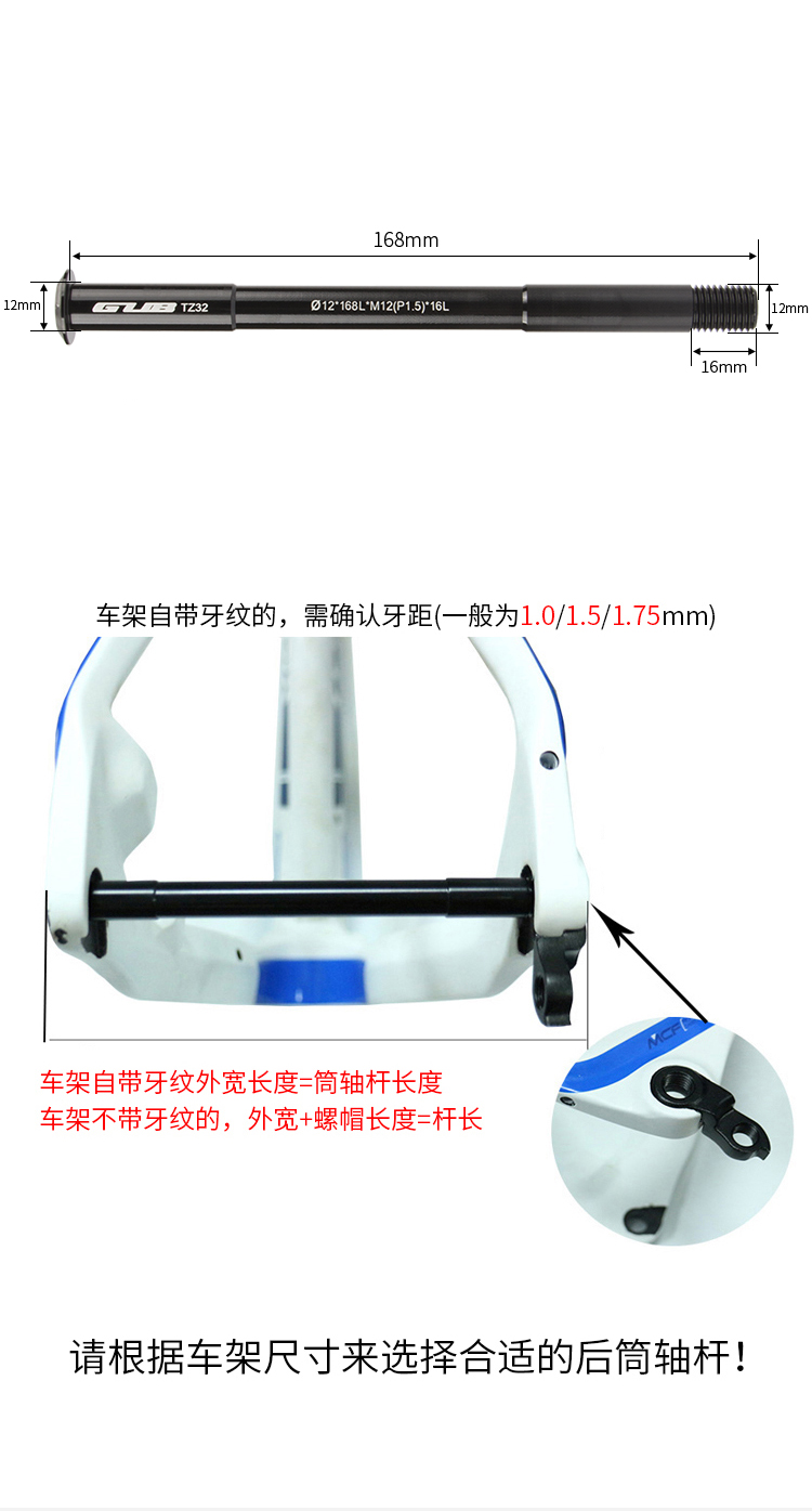 說(shuō)明:請(qǐng)根據(jù)前叉和車架尺寸選擇合適的桶軸桿!