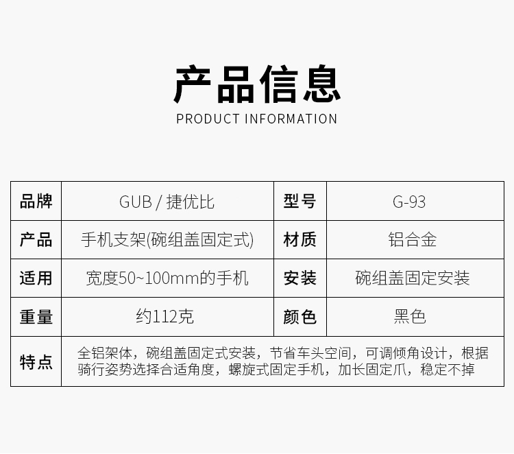名稱:GUB G-93 鋁合金手機(jī)支架(碗組蓋固定)