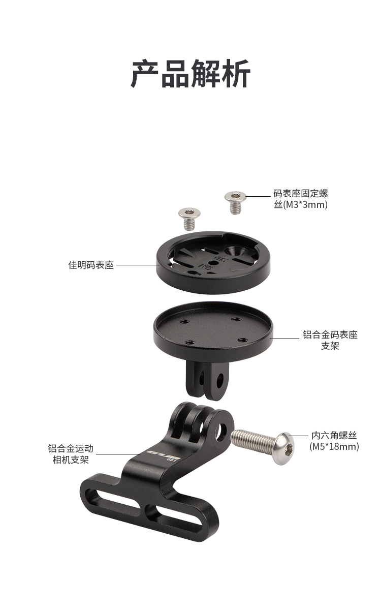 特點(diǎn):鋁合金材質(zhì)堅固耐用,體積小巧、居中安裝不占車頭空間,標(biāo)準(zhǔn)運(yùn)動相機(jī)接口,可接多種兼容此接口的配件,如碼表座,運(yùn)動相機(jī)和車前燈等