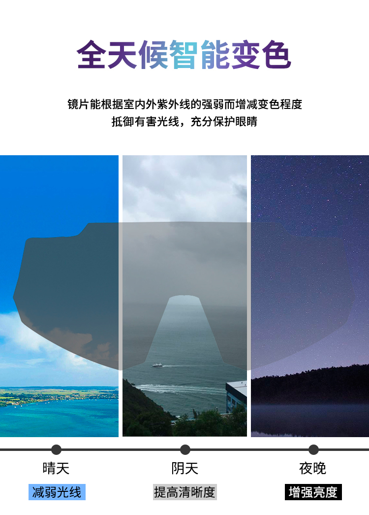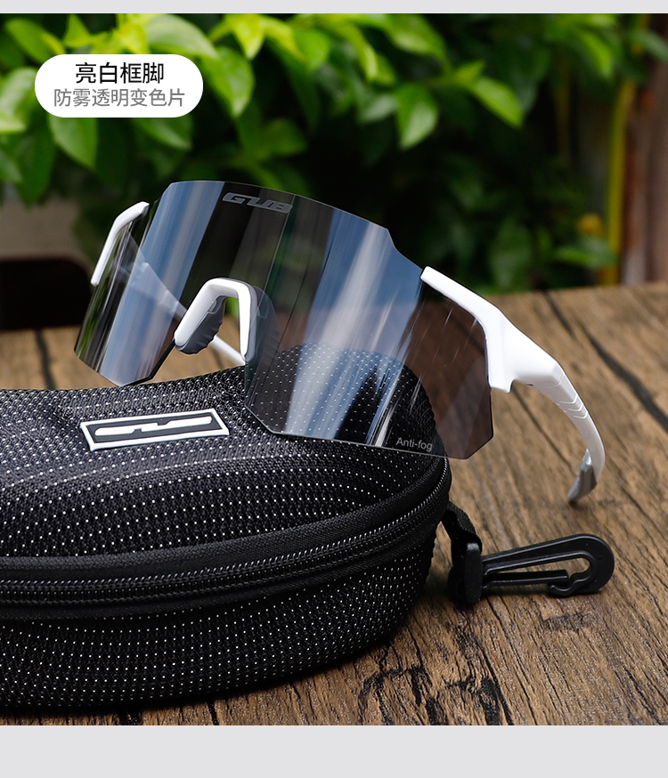 顏色:啞黑框腳/防霧透明變色片、亮白框腳/防霧透明變色片