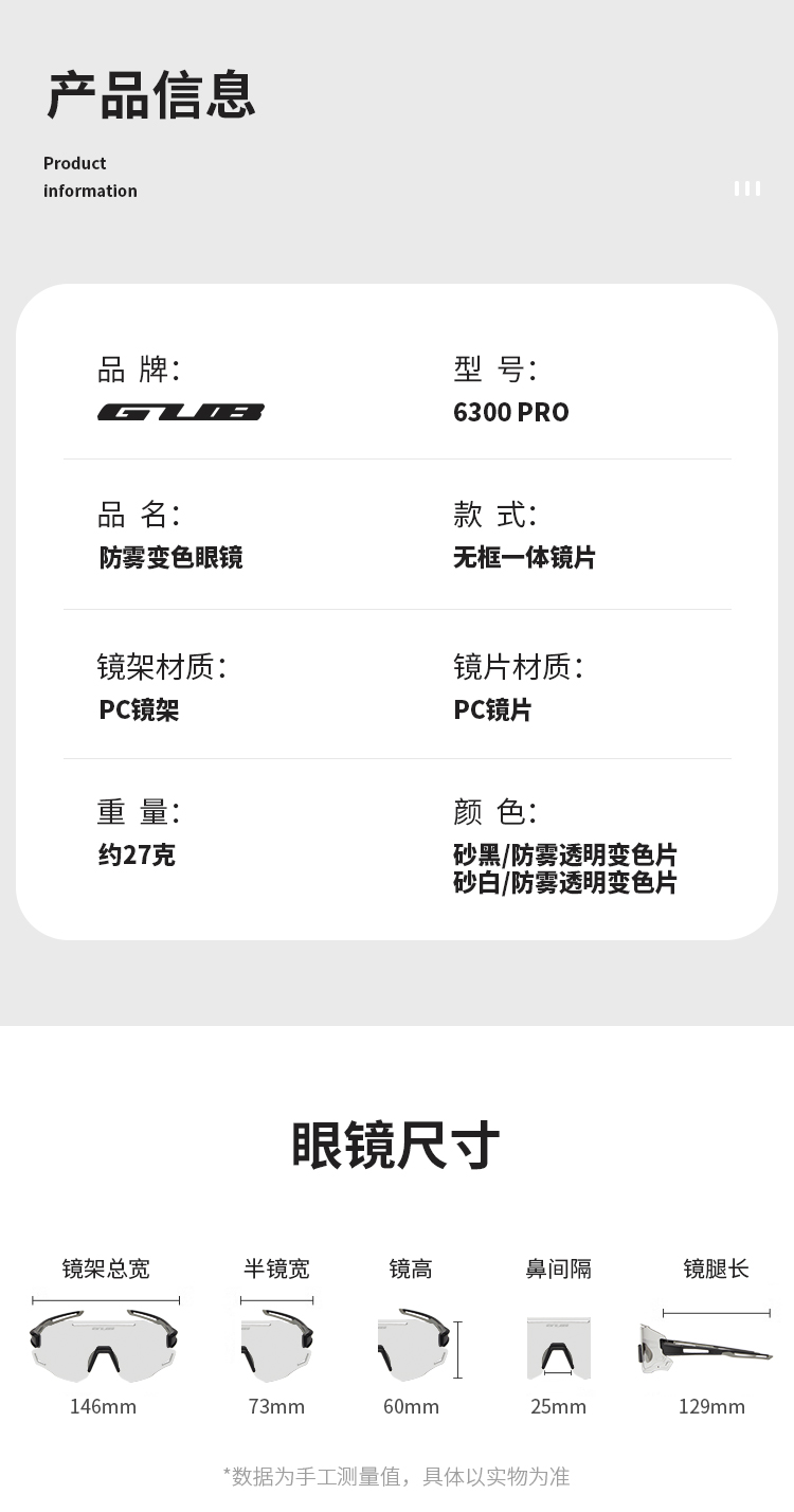 名稱:GUB 6300 PRO 防霧變色眼鏡