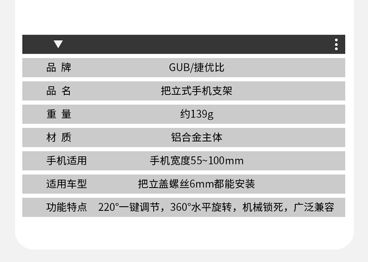 名稱:GUB G-96 鋁合金手機(jī)支架