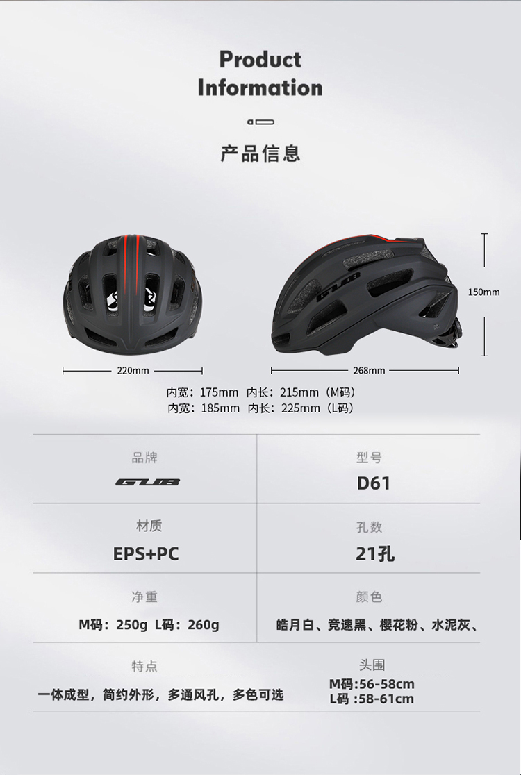 產(chǎn)品:GUB D61 輕便騎行頭盔