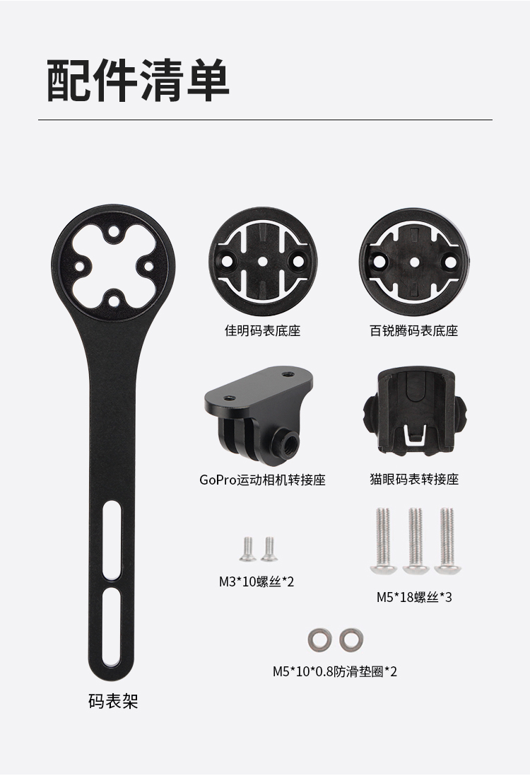 配置:配運動相機(jī)轉(zhuǎn)接座,佳明、百銳騰和貓眼碼表接座