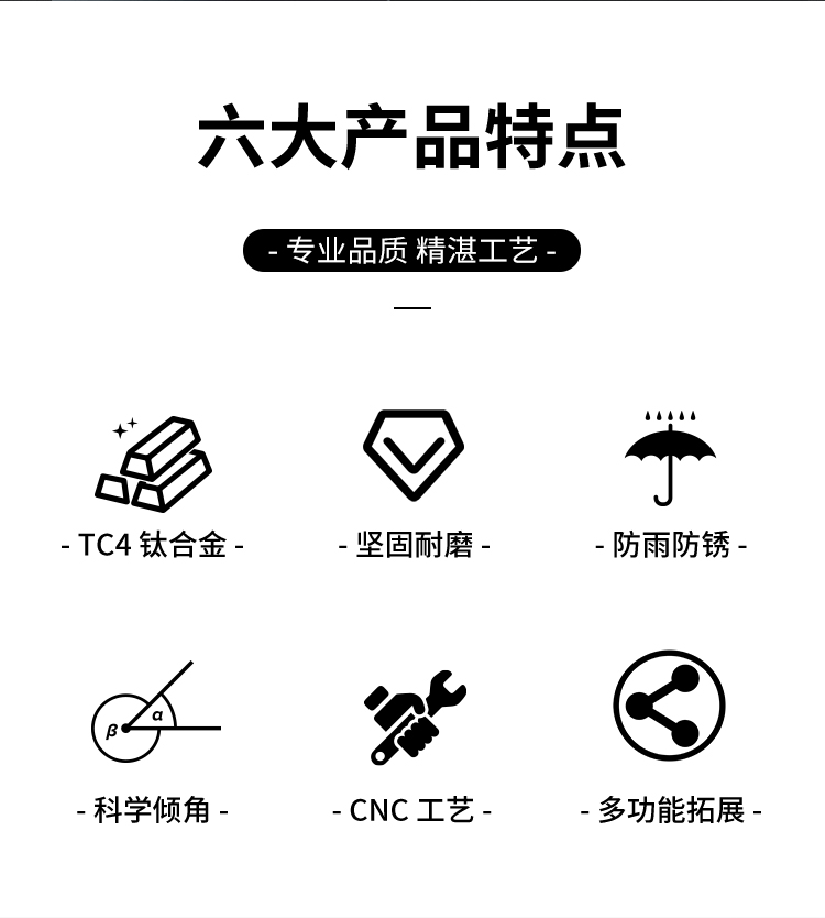 材質(zhì):鈦合金(支架+運動相機座),塑料(轉(zhuǎn)接座等)