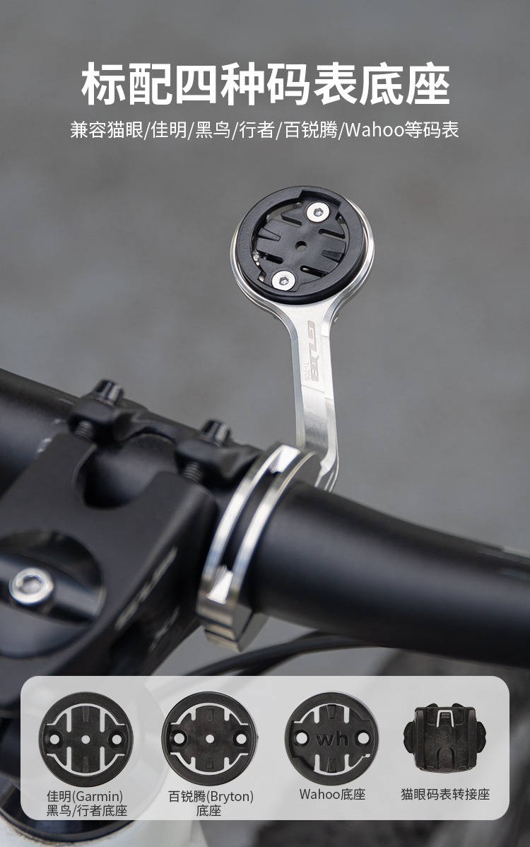 配置:配運動相機轉(zhuǎn)接座,wahoo、佳明、百銳騰和貓眼碼表接座、25.4mm墊圈一對