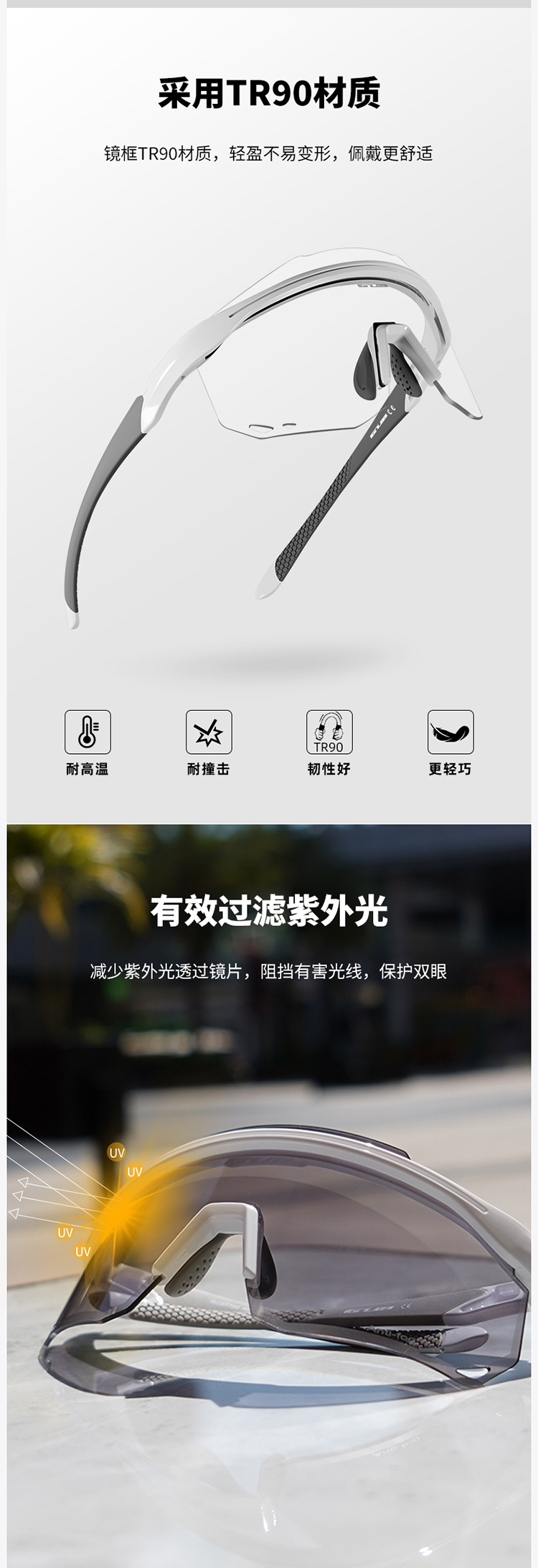 材質(zhì):TR90鏡架、PC鏡片