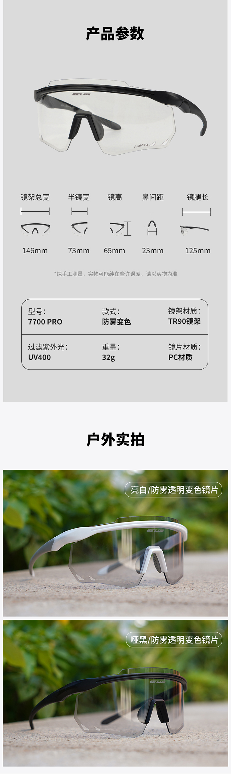 名稱:GUB 7700 PRO 防霧變色眼鏡