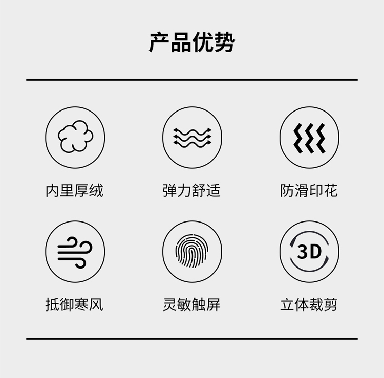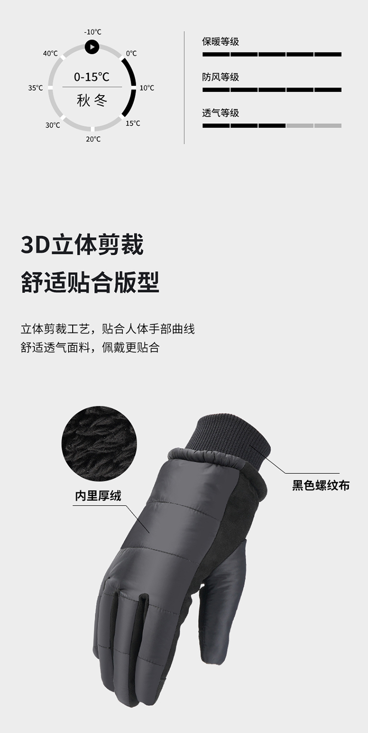 特點:內里加絨,抵御寒風,柔軟舒適,3D立體裁剪,防滑耐磨