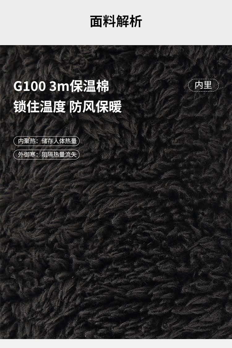 材質:20D尼龍油光布、G100 3m保溫棉、黑色仿皮絨