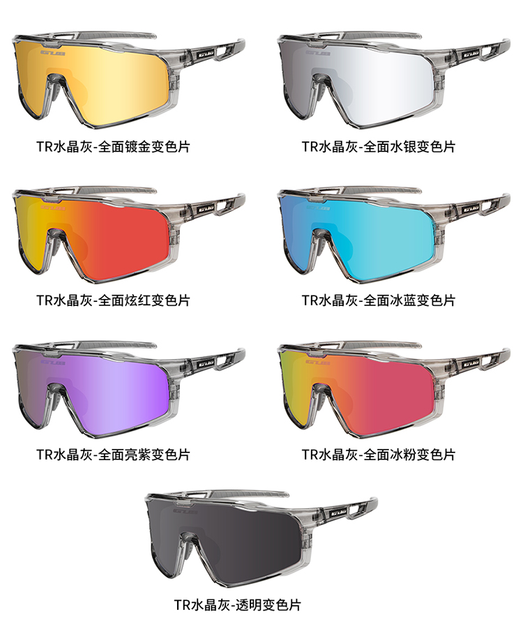 顏色:TR水晶灰/全面鍍金變色片、TR水晶灰/全面水銀變色片、TR水晶灰/全面冰藍(lán)變色片、TR水晶灰/全面炫紅變色片、TR水晶灰/全面亮紫變色片、TR水晶灰/全面冰粉變色片、TR水晶灰/透明變色片
